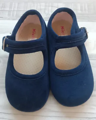 Bonitos zapatos de vestir para niña en color azul. - Cierre de hebilla. - Material tipo terciopelo. - Detalle de logo en la plantilla. - Número 23