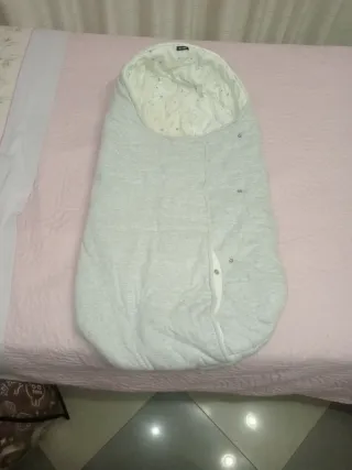 Saco para cuco de recién nacido, ideal para mantener al bebé abrigado y cómodo. - Exterior de tejido suave. - Interior con estampado de estrellas. - Cierre con botones a presión.