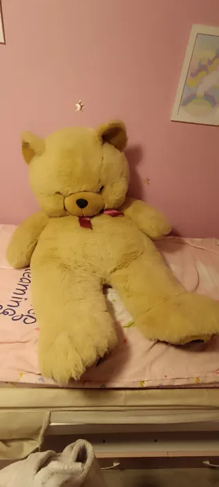Este adorable oso de peluche es perfecto para abrazar. Su gran tamaño lo hace ideal para decorar una habitación. - Color: beige. - Lazo decorativo en el cuello.