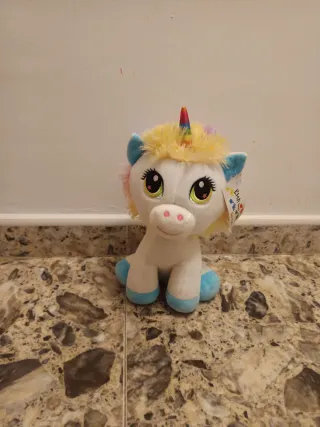 Adorable peluche de unicornio, listo para encontrar un nuevo hogar. Conserva su etiqueta original. - Diseño de unicornio tierno. - Melena y cola de colores vibrantes. - Cuerno iridiscente.