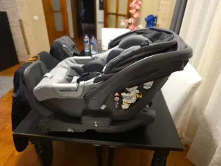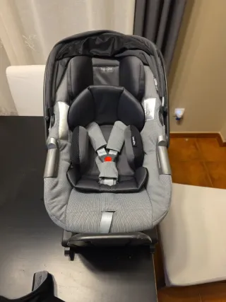 Silla de coche marca Inglesina modelo Darwin con base ISOFIX. - Color gris y negro. - Incluye arnés de seguridad de 5 puntos. - Capota integrada.