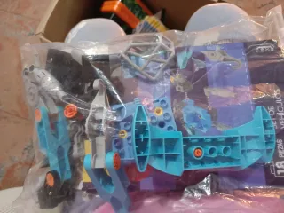 Set de construcción de vehículos. - Incluye 18 piezas. - Piezas de plástico de colores azul y naranja. - Instrucciones de montaje incluidas. La caja está rota