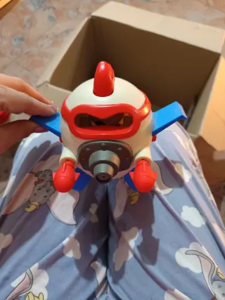 Divertido juguete con forma de avión, ideal para los más pequeños. - Diseño colorido con detalles en rojo, blanco y azul. - Forma redondeada y amigable.