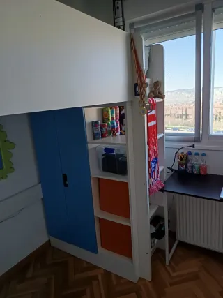 Cama alta de Ikea modelo Stuva. 150x200 cm Ideal para optimizar el espacio. Muy poco usada. Se vende por cambio a cama baja. El colchón no entra en la venta