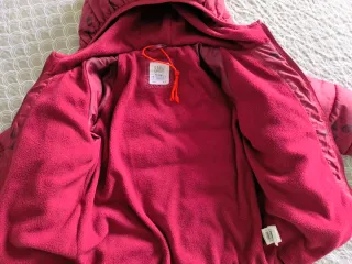 Chaquetón acolchado de color rojo para bebé, unisex, con un estampado divertido. Ideal para mantener abrigado a los más pequeños. - Talla 2/3 años. - Cierre de cremallera. - Capucha integrada. Está como nuevo, solo tiene el nombre puesto como se ve.