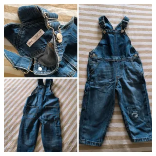 Lote de ropa bebé compuesto de: - mono vaquero de Zara - pantalón beige Kiabi - pantalón marrón Kiabi - camisa rayas Lefties - camisa azul Sfera - jersey Primark - jersey 🦊 Shein - jersey dinosaurio El Corte Inglés Está todo como nuevo