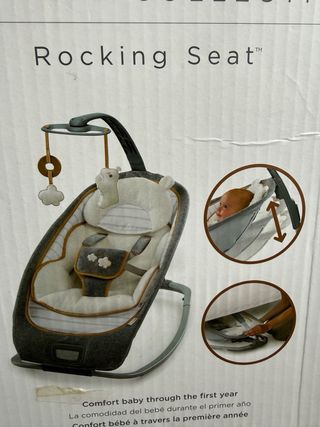 Hamaca mecedora de la colección Boutique de Ingenuity. Ideal para bebés. - Diseño moderno y confortable. - Incluye móvil con peluches. - Estructura robusta y segura. - Función de vibración con Pilas - Asiento reclinable, fácil de ajustar, con 3 posiciones - Se dobla completamente para guardar y transportar - Perfectamente embalado en caja original