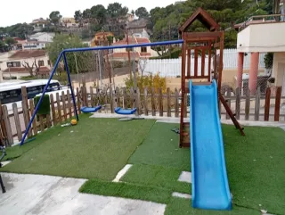 Conjunto de juegos infantil con casita de madera y columpio. Nuevo vale más de 900€. Se puede lijar y pintar y se queda nueva. Nosotros lo hacíamos cada dos años. Le faltan unos tiras de madera pero las tenemos que se pueden poder. El columpio original lo cambiamos por el que hay ahora y nos costó 70€. Comprado en 2021. Se vende porque los niños se han hecho grandes. Abstenerse de ofertas irrisorias. Algo negociable. Si eres de cerca te lo puedo hasta llevar - Casita de madera con tobogán. - Columpio con asiento tipo nido.