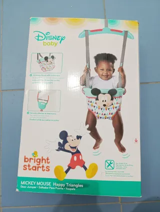 Columpio de puerta Disney Baby con diseño de Mickey Mouse. - Personaje: Mickey Mouse. - Marca: Disney Baby. - Estilo: Happy Triangles. - Incluye detalles con sonido crujiente.