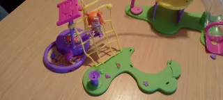 Set de parque de juegos de Pinzas y Pon. - Incluye figuras y accesorios. - Consta de columpio, tobogán, cama elástica, zona de escalada y arenarii - Dos diguras