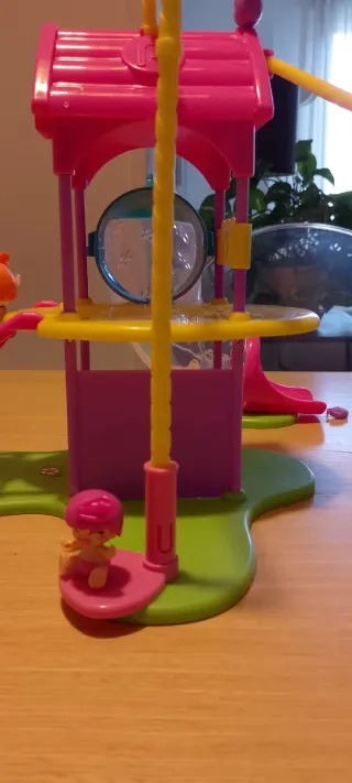 Casita Pin y Pon en buen estado. Ideal para jugar. Se vende todo lo que se vé en la foto. - Incluye tobogán y columpio. - Decorada con motivos florales. - Estructura de plástico resistente.
