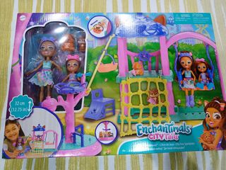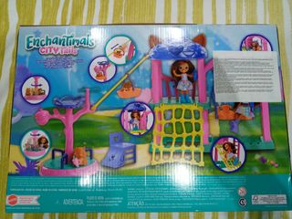 ((( más artículos en mi perfil ))) ¡Este parque de juegos de City Tails de Enchantimals tiene todo lo que necesitas para pasarlo en grande! Incluye conjunto de juego (30,48 cm), 2 muñecas (15,24 cm/10,16 cm), 2 mejores amigas y más de 10 accesorios. Cuenta con 4 zonas de juego con funciones móviles como un columpio, una tirolina, un carrusel y un timón de barco. También hay una red para escalar, un minitobogán para las mejores amigas y una torre de vigilancia con un telescopio.