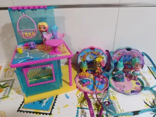 Conjunto de muñecas Kookyloos con temática de sirenas. - Incluye casa de playa, con sirena, mascota, columpio y accesorios. - Dos bolsos/casitas portátiles, con sirenas, mascotas y accesorios.