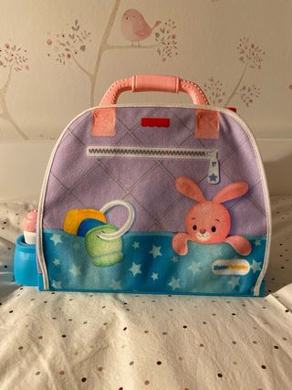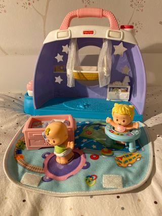 Maletin bebes Fisher Price. Columpio accionable. Cómodo maletin para guardarlo todo. 2 bebes, biberon, trona, cuna y mesa de juegos