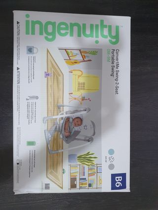 Columpio portátil para bebés de la marca Ingenuity. - Modelo: Swing 'n Go Portable Swing. - Diseño compacto y fácil de transportar. - Incluye barra de juguetes.