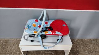 Columpio para bebé, ideal para los primeros meses. Está en buen estado, aunque presenta algunas señales de uso. - Diseño con estampado floral. - Estructura de metal resistente. - Incluye arnés de seguridad.