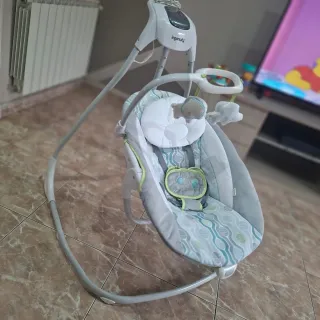 Columpio para bebé de la marca Ingenuity, con un diseño moderno y cómodo. - Tejido suave con estampado. - Cojín reductor. - Barra de juguetes. - Arnés de seguridad. - Varias velocidades de balanceo - Música relajante
