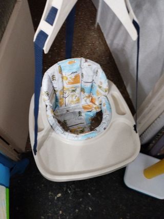Columpio para bebé de 6 a 36 meses. Con diseño ergonómico, y barras en vez de cuerdas. Sirve para interior y exterior. Peso maximo: 25kg. Sin usar Más descripción en fotos