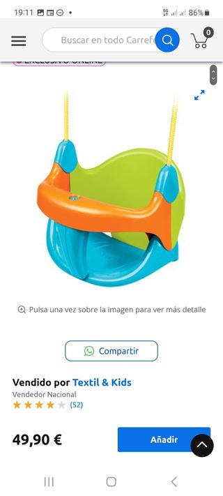 columpio con todos los accesorios originales. Poco uso solo un verano. Nuevo vale 50e en una oferta, como se ve en la foto