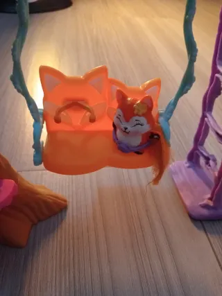 Set de juego de Enchantimals con un columpio y accesorios. - Incluye una muñeca. - Columpio con diseño de zorro. - Accesorios adicionales para jugar.