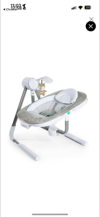 Columpio compacto para bebés, ideal para mantenerlos entretenidos y cómodos. Su diseño moderno se adapta a cualquier hogar. - Estructura gris y blanca. - Asiento acolchado con estampado de zorro. Marca: Ingenuity, Columpio Compacto y Portátil AnyWay Sway Ray, vibraciones, 16 melodías, 2 sonidos, asiento gira 180°, 3 direcciones de balanceo, cable USB, desde recién nacido hasta 9 kg Precio original:120€