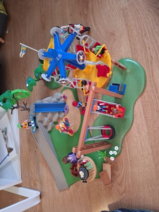 Preciosa colección Playmobil de un parque infantil, en muy buen estado. Incluye diferentes elementos como un tiovivo, tobogán, columpios, zona de skate y barbacoa. ¡Perfecto para horas de diversión! - Incluye varias figuras Playmobil. - Ideal para niños y niñas. - Se encuentra en excelentes condiciones.