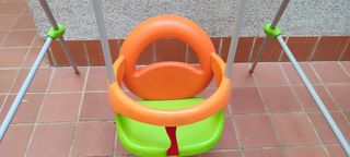 Columpio para bebés, ideal para los más pequeños. - Estructura de soporte resistente. - Asiento de plástico. - Correas de sujeción.