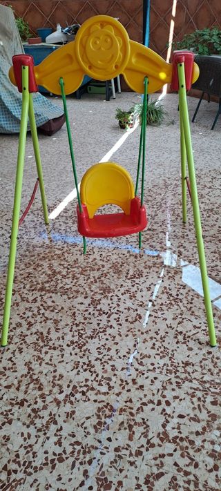 Columpio para niños, completamente nuevo y sin abrir. Ideal para el entretenimiento al aire libre. - Estructura metálica resistente. - Asiento de plástico. - Cuerdas de sujeción. - Tapones de seguridad en las bases. Entrega en Sevilla, Mairena del Alcor o alrededores.