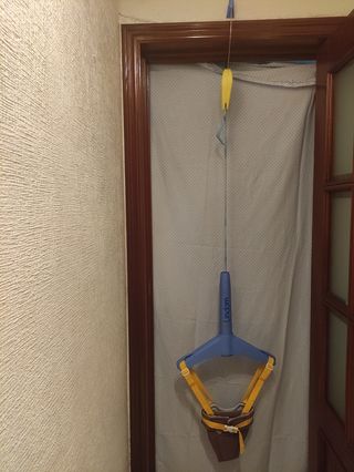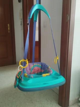 Columpio de bebé para colocarlo en el marco de una puerta. El bebé sube y baja levemente. Les resulta muy divertido y entretenido.