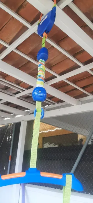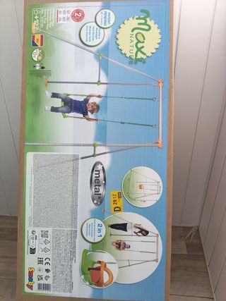 Poco uso lo vendo por mudanza como está en la foto lo de abajo trae un recipiente para q se llene de agua con un tapón y haga contrapeso para el columpio nuevo me costó 154€ es de 1 a 3 años