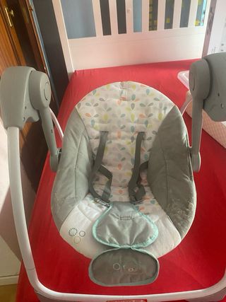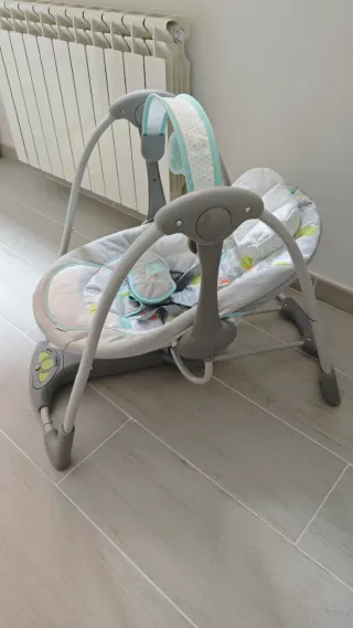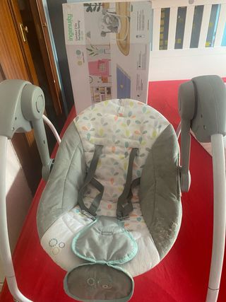 Columpio portátil Ingenuity para bebés de 0 a 9 meses. Ideal para mantener al bebé entretenido y relajado. - Diseño compacto y plegable. - Incluye varios modos de balanceo y melodías tranquilizantes para dormir a tú bebe. - Barra de juguetes extraíble con peluches. - Tejido suave y acolchado para mayor comodidad. - Funciona con 4 pilas D/LR20 (no incluidas) No se ha usado. Me lo regalaron pero nunca me dió por montarlo así que está como nuevo. Hago envíos.