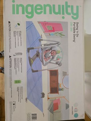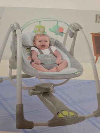 Vendo columpio mecedora para bebé Ingenuity Swing-n-Go, en perfecto estado. Es portátil y ligero, ideal para cualquier hogar. - Diseño moderno y elegante en tonos grises y verdes. - Incluye suaves juguetes colgantes para entretener al bebé. - Mecedora con diferentes velocidades y opciones de balanceo. Guardado en su caja original, muy poco uso. Como nuevo