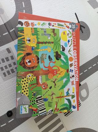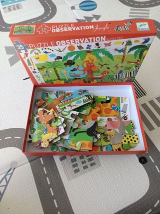 Puzzle y juego de observación de la jungla al mismo tiempo, muy divertido de 35 piezas para descubrir los diferentes animales de la selva.