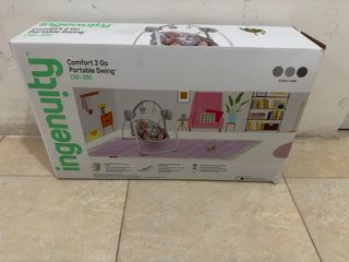 Columpio portátil Ingenuity Comfort 2 Go, modelo OM-9M. Diseñado para calmar y entretener al bebé. - Asiento reclinable ComfortRecline™ con 2 posiciones. - Temporizador con 3 configuraciones: 30, 45 y 60 minutos. - Tecnología TrueSpeed™: 6 velocidades de balanceo. - Tecnología WhisperQuiet™: el motor no hace ruido. - 12 melodías relajantes con volumen controlable. - Marco compacto y plegable para fácil transporte. - Fácil de limpiar, con cojín y soporte para la cabeza.