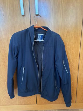 Chaqueta bomber azul de Jack & Jones para niño, talla 152. Como nueva. - Cierre de cremallera frontal. - Bolsillos laterales con cremallera. - Puños y bajo elásticos.