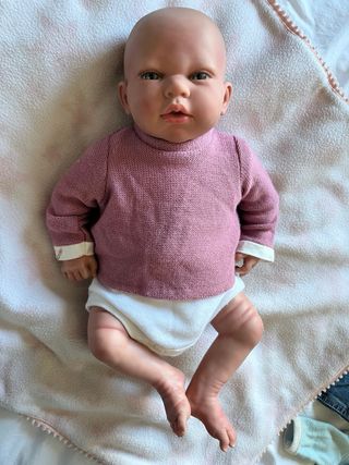 Muñeca Reborn de la marca Arias, con un tamaño de 40cm. Viene vestida con un conjunto de punto rosa y blanco, gorrito a juego y un chupete. - Incluye un peluche de unicornio. - Detalle de babero con estampado. - Mantita