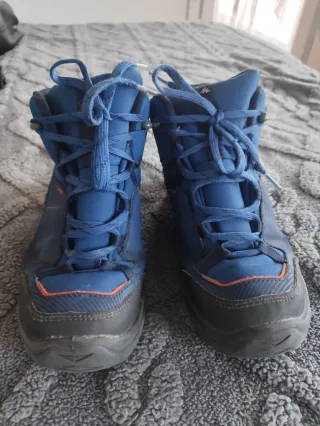 Botas de senderismo Quechua de media caña en color azul y gris. Perfectas para tus aventuras al aire libre. Talla 37. - Material exterior textil. - Suela de goma. - Cierre con cordones. - Detalle de logo Quechua en el lateral. - Etiqueta WATERPROOF visible.