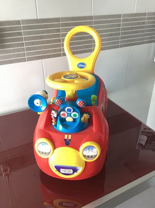 Coche correpasillos de Disney con el personaje de Mickey Mouse. Ideal para los más pequeños. - Diseño en color rojo, verde y azul. - Volante interactivo con sonidos.