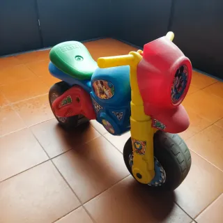 Se venden tres motos correpasillos para niños. - Moto azul con detalles en amarillo y número 94. - Moto roja con detalles en azul y diseño de Mickey. - Moto amarilla con diseño de Paw Patrol.