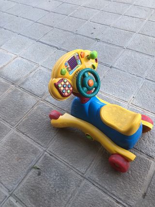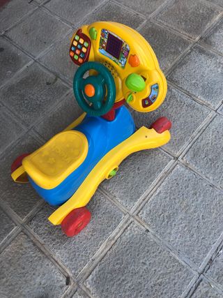 Correpasillos marca Vtech musical, con volante extraible, luces, y actividades. Se transforma en balancín.
