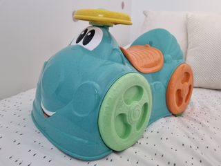 Correpasillos convertible en coche para subirse encima tb y de la marca Imaginarium. - Diseño divertido y colorido. - Ruedas para facilitar el movimiento. - Volante interactivo con luces y musica. -Tiene un pequeño compartimento aje se abre para guardar juguetes Está en perfecto estado, solo le falta una pegatina en forma de ojo