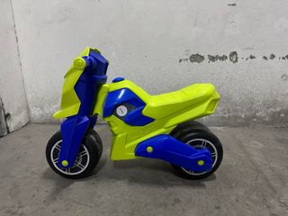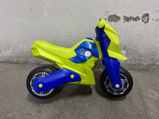 Moto de correpasillos de plástico para niños. Ideal para iniciarse en el mundo de las dos ruedas. - Diseño deportivo en colores verde y azul. - Ruedas resistentes para un buen agarre.