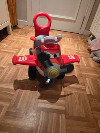 Correpasillos con diseño de avión inspirado en Cars. Ideal para los más pequeños. - Color rojo. - Detalles de personaje. - Asa para empujar. Con luces y sonido