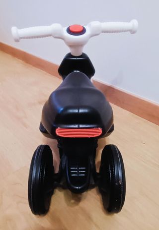 Moto correpasillos estilo Vespa en color rojo. - Diseño inspirado en la icónica Vespa. - Marca Chicco. - Ruedas para deslizarse. -Tiene sonidos
