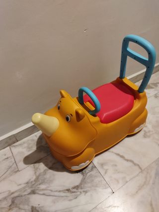 Correpasillos con firma de rinoceronte, con anillas para jugar y almacenaje (las anillas se pueden guardar dentro). De Infanity. Edad recomendada hasta los 6 años.