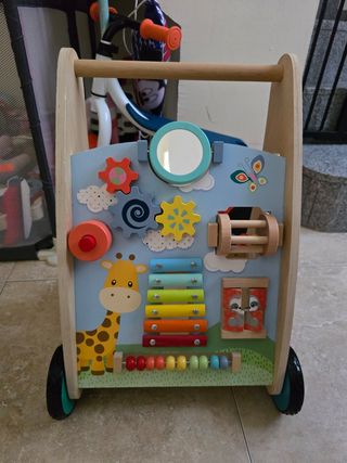 Prácticamente nuevo. No lo ha usado nunca. Lo único que no tiene son las piezas de al lado para meter en el agujero. Lo demás en perfecto estado . Andador de madera para bebés, ideal para que los más pequeños den sus primeros pasos de forma segura y divertida. Está en muy buen estado. - Diseño Montessori, estimula el desarrollo psicomotor. - Material de madera resistente y de alta calidad. - Incluye múltiples actividades: engranajes, xilófono, ábaco, etc.