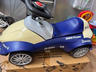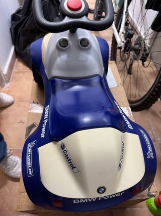 Correpasillos con diseño inspirado en BMW posee original de la casa costó 200. Ideal para los más pequeños. de 1 a 4 años . - Diseño deportivo en azul y blanco. - Volante con botón central. - Pegatinas de marcas como Michelin y Castrol.