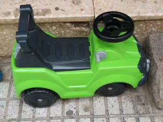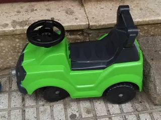 Correpasillos de plástico en color verde brillante, ideal para los más pequeños. NEGOCIABLE - Diseño tipo coche. - Volante negro. - Asiento negro. - Ruedas negras.