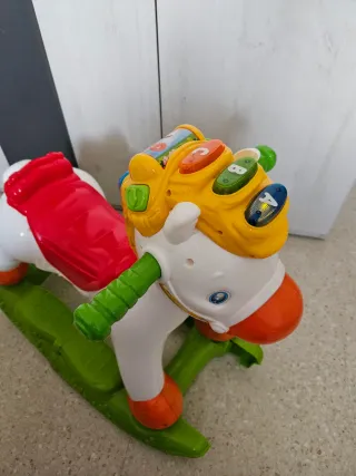 Caballito balancín de la marca Baby Clementoni, ideal para los más pequeños. - Diseño colorido y divertido. - Asiento ergonómico. - Base balancín estable.