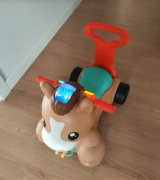Correpasillos con forma de caballo de la marca Fisher Price. Ideal para los más pequeños. - Diseño divertido y colorido. - Mango para empujar. - Ruedas para desplazarse.